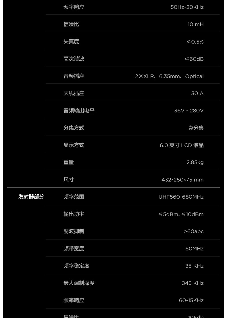 输出端口 | 6.35mm,XLR*2 Blanced Socket | |